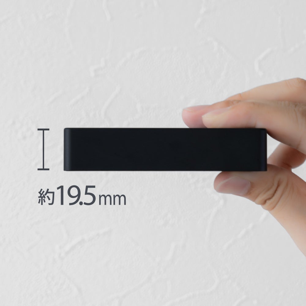 本製品は薄さわずか19.5mmのAC充電器です。厚さは1円玉の直径とほぼ同じで、壁とデスクの間やコンセントに挿しても邪魔になりません。PD65Wの高出力でPD対応のノートPCも充電できます。