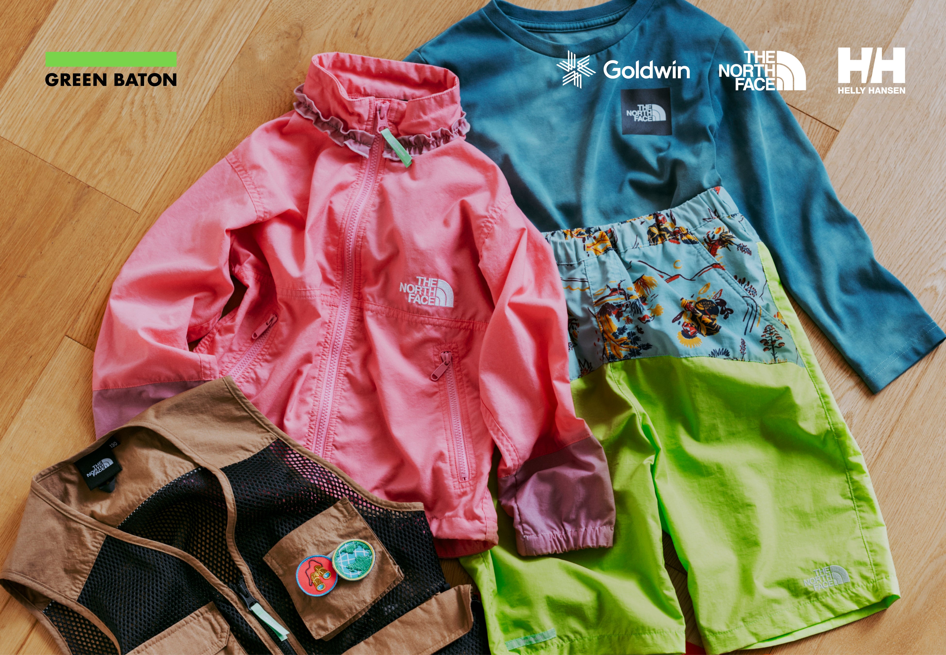 ゴールドウイン社は、スポーツアパレルメーカーとして、ものづくりを通して豊かで健やかな暮らしを生み出し、地球、社会の持続可能性に貢献することが使命と考えています。ファッションロス・ゼロを目指す同社のサステナブル・レーベル「GREEN BATON」。会場では、THE NORTH FACE、HELLY HANSEN、Goldwinの不要になった子ども服を対象に、出張買取を行います。