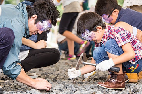 「どきどき恐竜発掘ランド」で約1億2千万年前の白亜紀前期の石を割って化石発掘に挑戦!