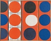 オノサト トシノブ「朱地に紺の丸」