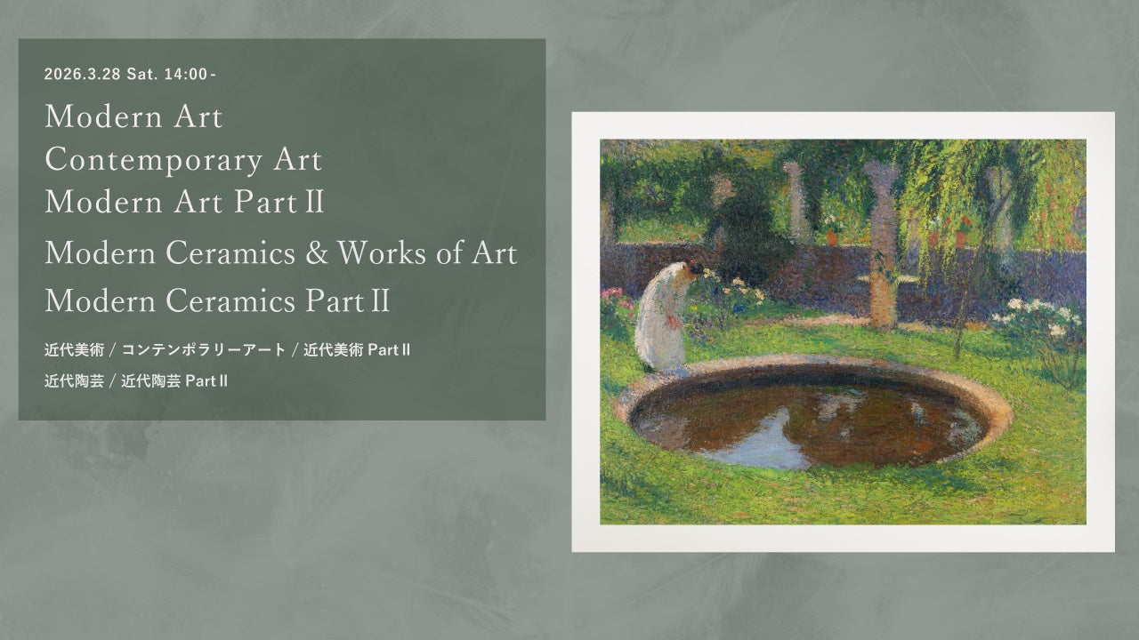 日(土)に近代陶芸/近代陶芸PartⅡ/近代美術/コンテンポラリーアート/近代美術PartⅡオークションを開催しました。落札価額合計は2億1,706万8,250円(金額には落札手数料のみ含む)、落札率91.0%の結果となりました。