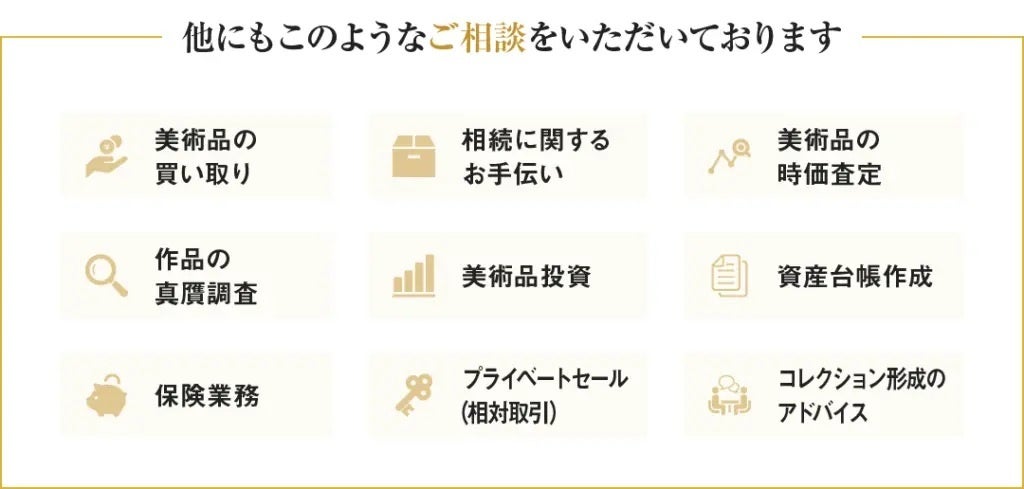 美術品に限らずワイン、時計、宝石の整理・ご売却についてもお気軽にお問い合わせください。