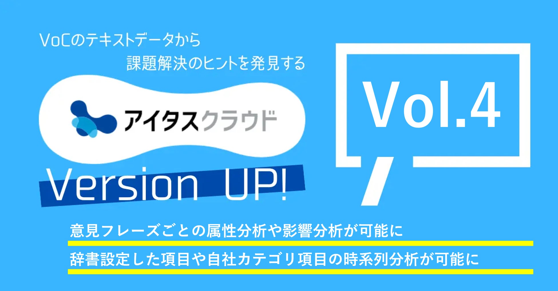 株式会社 Insight Tech(本社:東京都新宿区、代表取締役社長:伊藤友博)は、各企業のお客さまやユーザーから寄せられる意見:VoC(Voice of Customer:顧客の声)データから課題解決のヒントを見つけるダッシュボードサービス「アイタスクラウド」をバージョンアップ致しました。