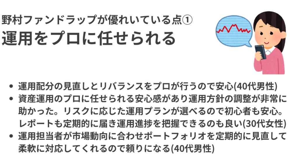 野村ファンドラップを高く評価する回答者の多くは、その理由に「運用をプロに任せられる」点を挙げていた。