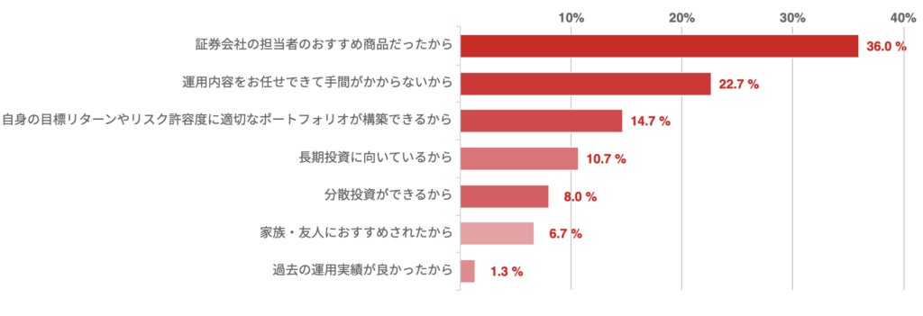 アンケートによれば、「証券会社の担当者のおすすめ商品だったから(36.0%)」が最も多かった。