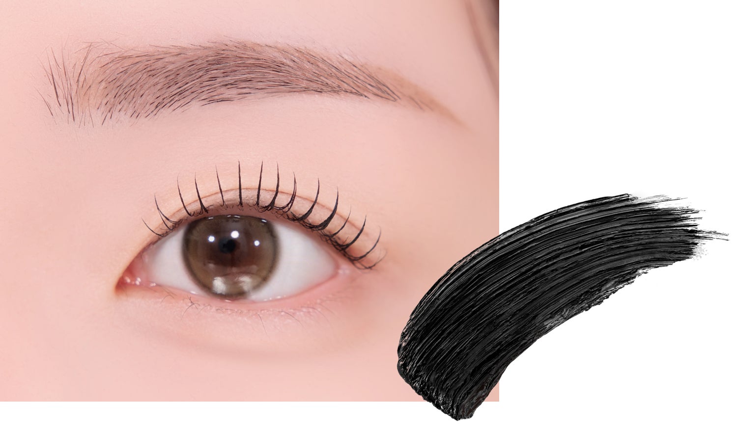 既存の「ヌードアイラッシュ」をベースに、「アイドールスリムマスカラ ロング」を重ねることでまつ毛の長さがさらにUP!