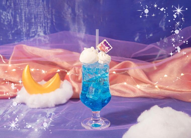 ブルーハワイとラムネ味の2層のブルーカラーのソーダに、ヨーグルトアイスをのせたフロートドリンクです♪