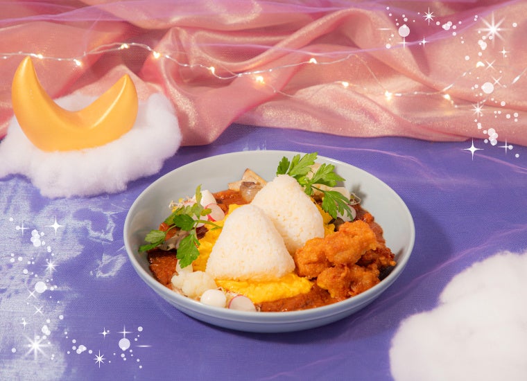 宮武颯さんのアイデアから、好物である塩おむすびを中心に、唐揚げやたまごなどの具材を盛り付けたメニューです。