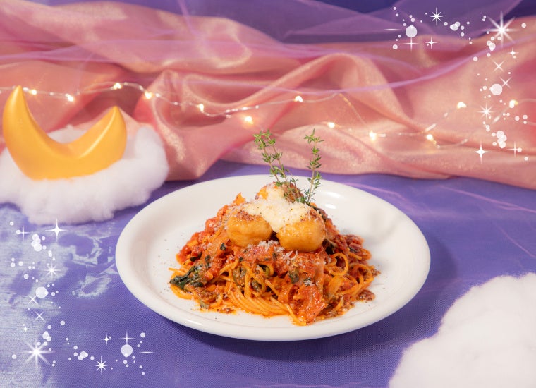 チーズボールと相性の良いトマトクリームパスタをセットで楽しめるおしゃれなメニューです。