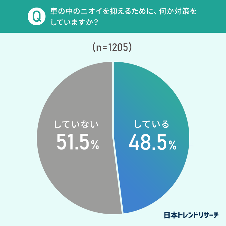 続いて、車の中のニオイを抑えるために、何か対策をしているかについて聞きました。