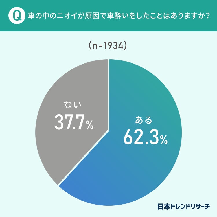 ■62.3%が、車の中のニオイが原因で車酔いをしたことがある