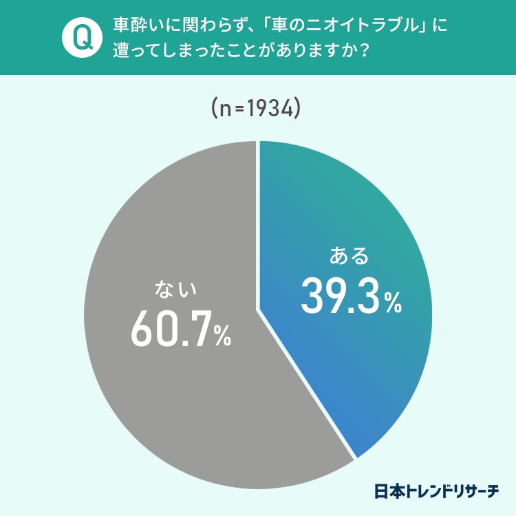 ということで今回は、株式会社ハル・インダストリと共同で、事前調査で「車酔いをしたことがある」と回答した全国の男女1934名を対象に「車のニオイトラブル」についてのアンケートを実施しました。