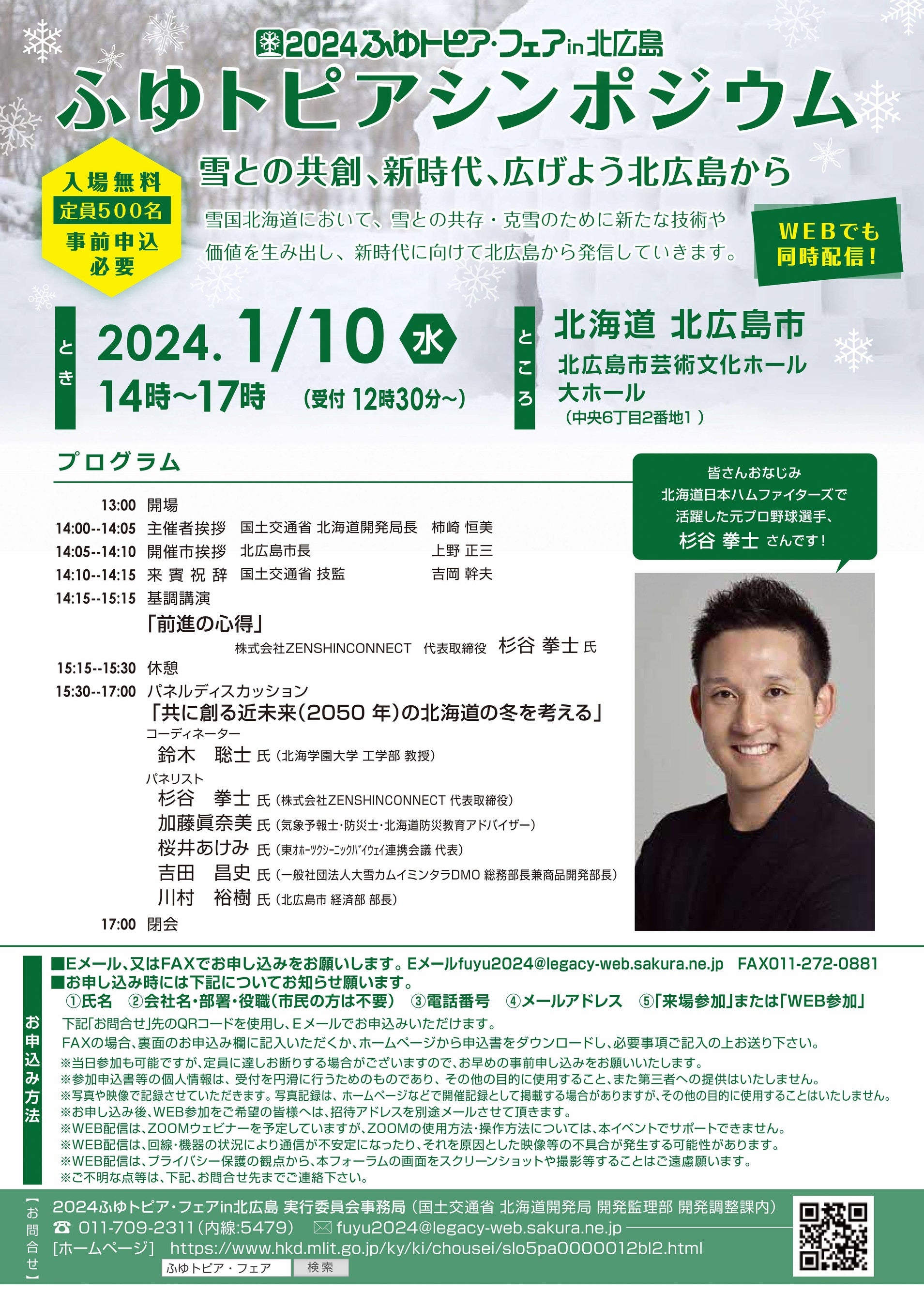 オープニングセレモニーとふゆトピア展示会は「エスコンフィールドHOKKAIDO」!ふゆトピアシンポジウムには、元プロ野球選手の杉谷拳士さんも登場します!