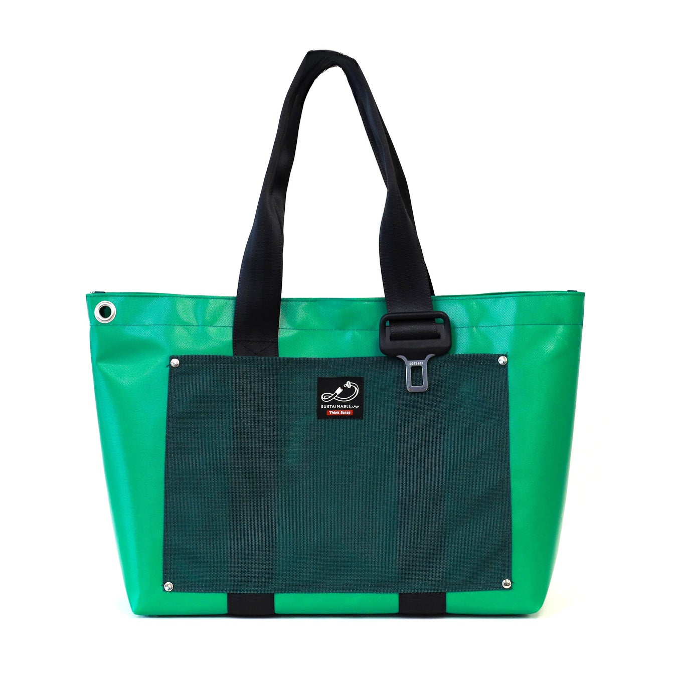 自社工場の生産工程からどうしても出てしまうシートベルト端材を活用した、東海理化発のアップサイクルブランド。シートベルトの質感や機能性を活かし、丈夫で長持ちするのが特長です。ほかの企業にも呼びかけ、ビニールカーテンやテント生地などの端材を提供してもらい、商品を作っています。