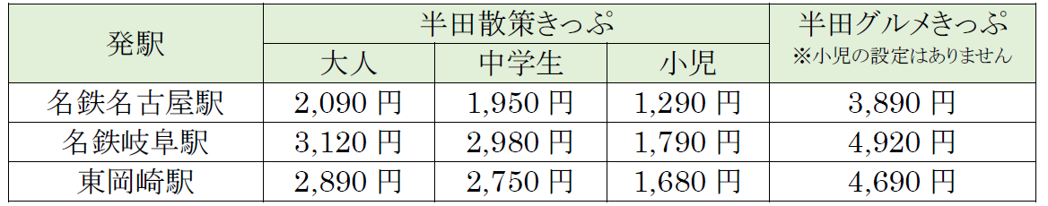 ①任意の発駅から知多半田駅・住吉町駅・半田口駅までの名鉄電車往復割引乗車券