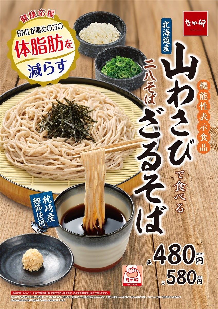 【なか卯】~健康応援!体脂肪を減らす“山わさび”~なか卯の「山わさびざるそば」登場!