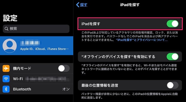 iPadを盗難されたり、紛失したりした場合に第三者がiPadを勝手に初期化して使用しないようにする目的でかけるロックをアクティベーションロックと呼びます。iPadの「iPadを探す」をオフにすればアクティベーションロックはかかりませんので、初期化前には忘れずに作業しましょう。