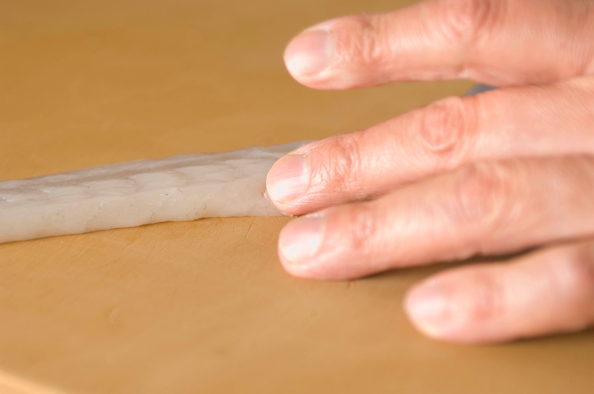 ふぐ刺しの身上は、皿の絵柄が透けて見えるほど薄く引く包丁さばき。美しく繊細なこの技を支えているのが、丹念な仕込みです。