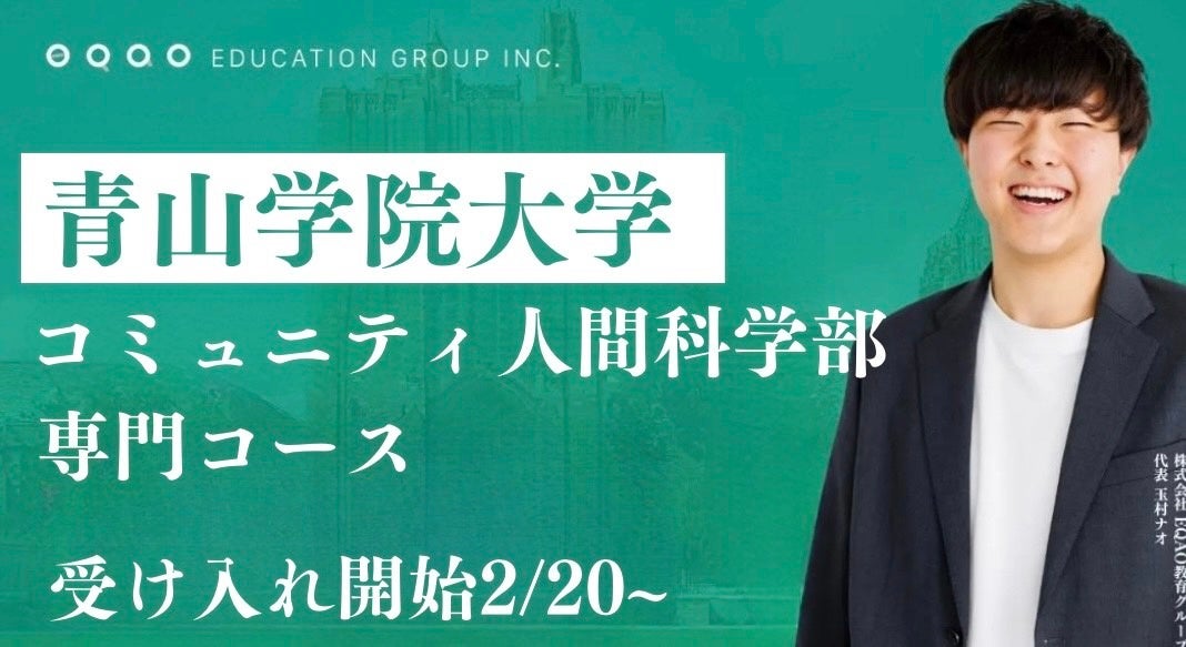【2/20~】総合型選抜で高い合格率を誇るEQAOが、青山学院大学コミュニティ人間科学部対策専門コースであなたを合格に導きます!専門性の高いプロ講師と一緒に早めの対策をし合格を勝ち取りましょう!