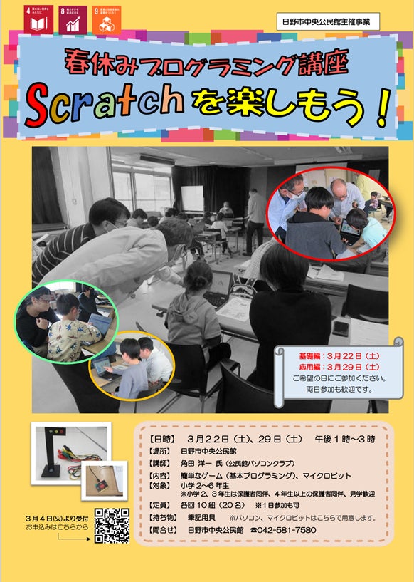 公民館では、IT教育の入り口として楽しみながら学ぶことに主眼を置き、簡単なプログラミングを体験しながら、「ものづくり」に興味を持つことを目指しています。