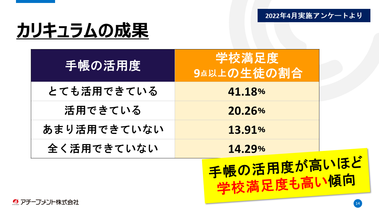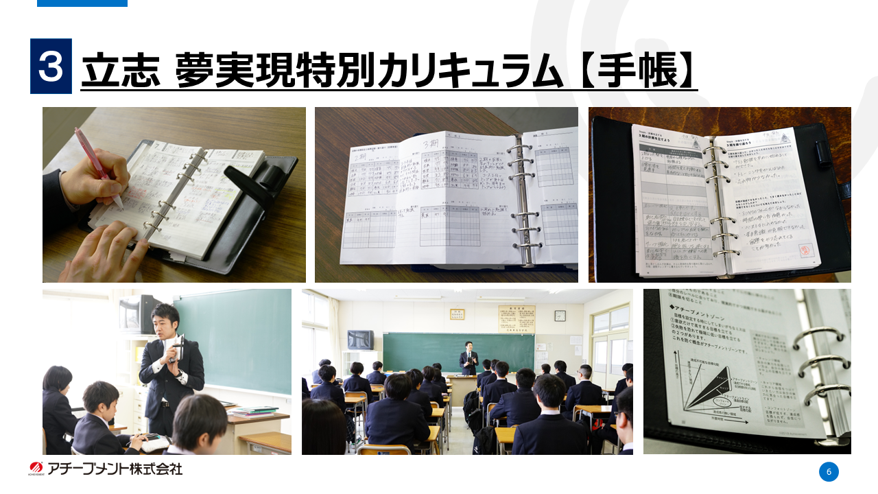 そして、年に4回行われるのが手帳の活用を後押しをする特別授業です。開発会社であるアチーブメント株式会社に所属するプロの講師が、学校まで出向き実際に講演をさせていただきます。