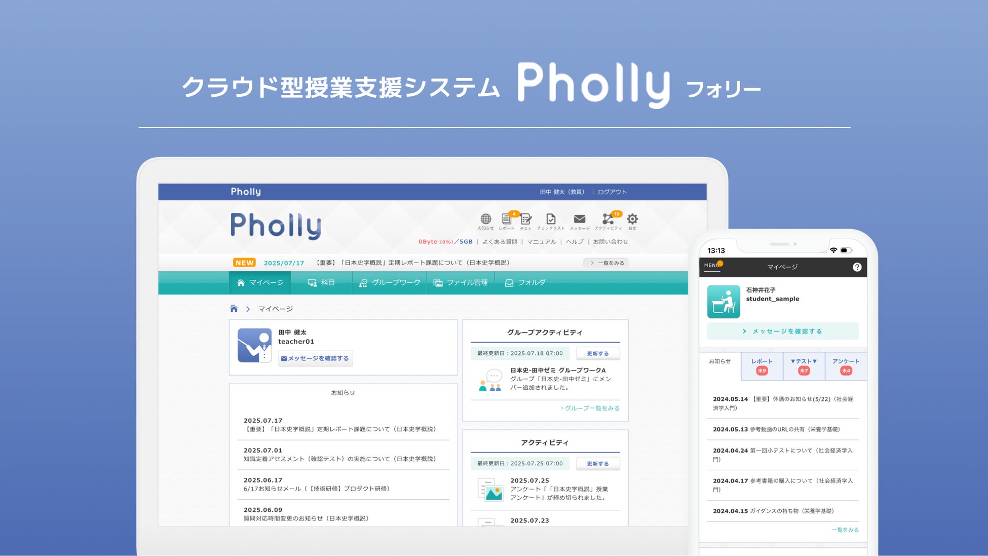 Phollyは、大学や専門学校を中心にご利用いただいている授業支援システムです。業界最安値帯の料金プラン、最短1か月から利用できる柔軟さが特徴です。