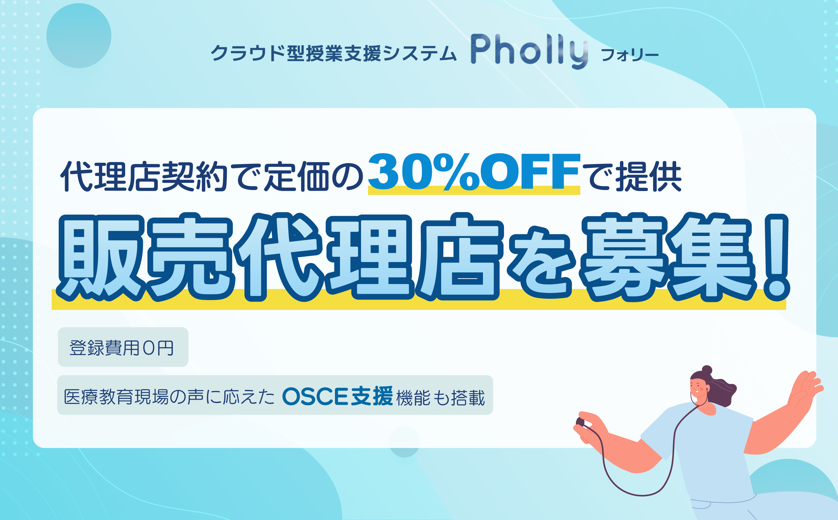 販売代理店マージンを30%へ拡大!OSCE支援機能で医療系学校から反響続々、授業支援システム「Pholly(フォリー)」