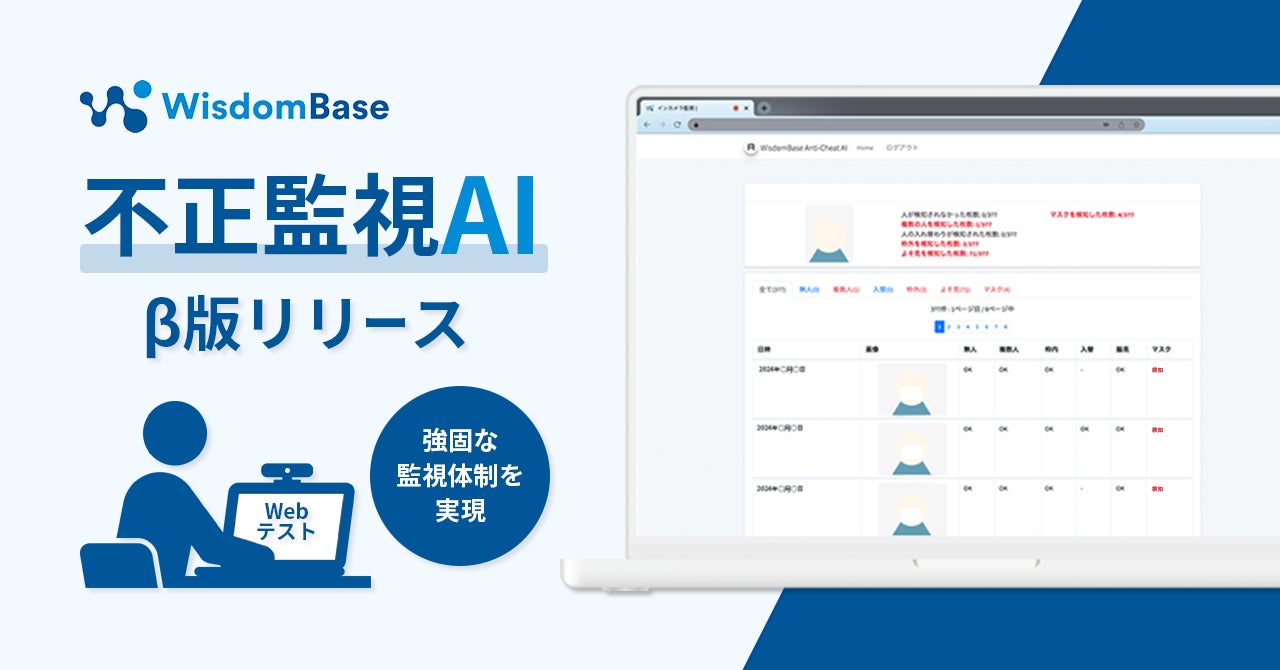 シェアウィズが提供するWisdomBaseでは、受験中の様子を監視する「インカメラ監視機能」や「デスクトップ監視機能」などの不正対策機能をリリースし、オンラインでも公平性を担保し試験を実施いただけるシステムを提供してまいりました。