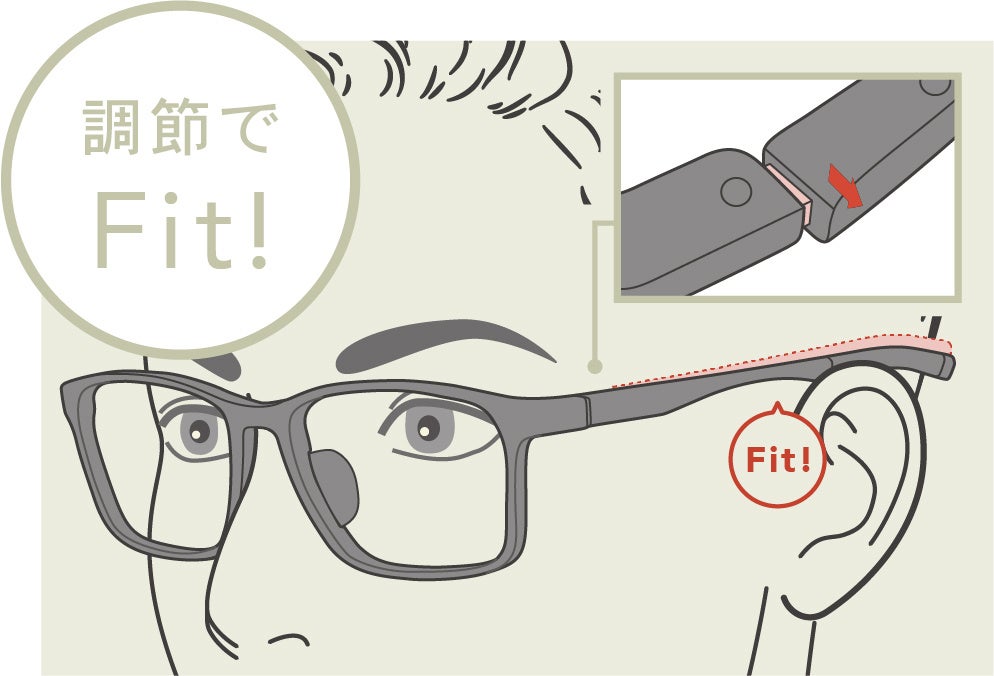 かけ心地を調整できる“可動式テンプルエンド”モデル