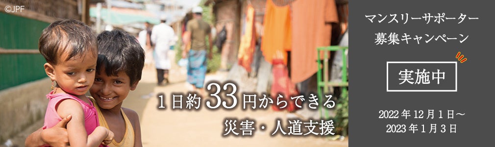 緊急人道支援団体のジャパン・プラットフォーム(東京都千代田区/以下、JPF)は、寄付月間の開始となる12月1日にあわせ、本日、マンスリーサポーター募集キャンペーンをスタートしました。