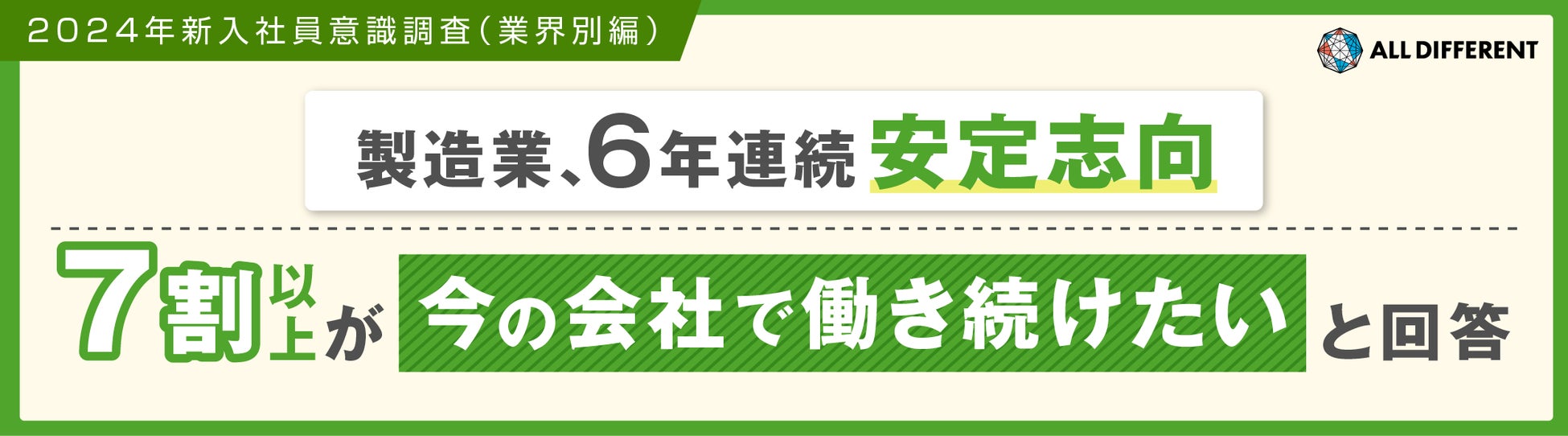 製造業の新入社員、6年連続”安定志向” 7割以上が「今の会社で働き続けたい」と回答