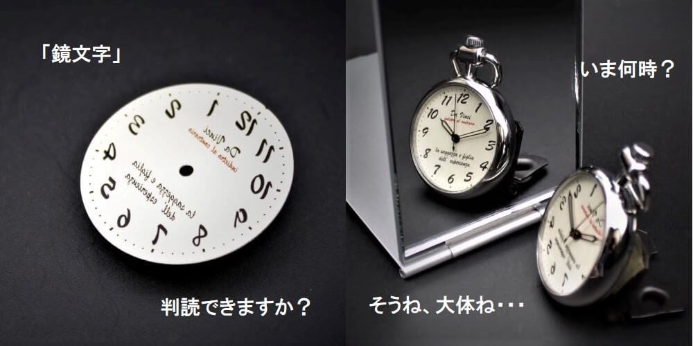 約500年前のあのダ・ヴィンチの秘めたるメッセージを記載。鏡の前でのみ判読可能なそのメッセージの意味は、リターン品の保証書にのみ記載されています。
