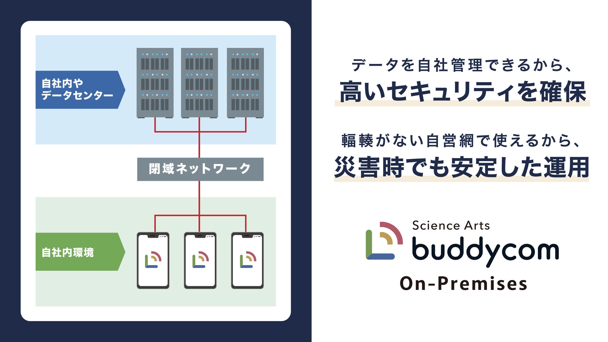 株式会社サイエンスアーツ(所在地:東京都渋谷区、代表取締役社長:平岡 秀一)は、フロントラインワーカーをつなげるライブコミュニケーションプラットフォーム「Buddycom(バディコム)」のオンプレミス版である、「Buddycom On-Premises」を2025年4月1日より提供開始することをお知らせします。