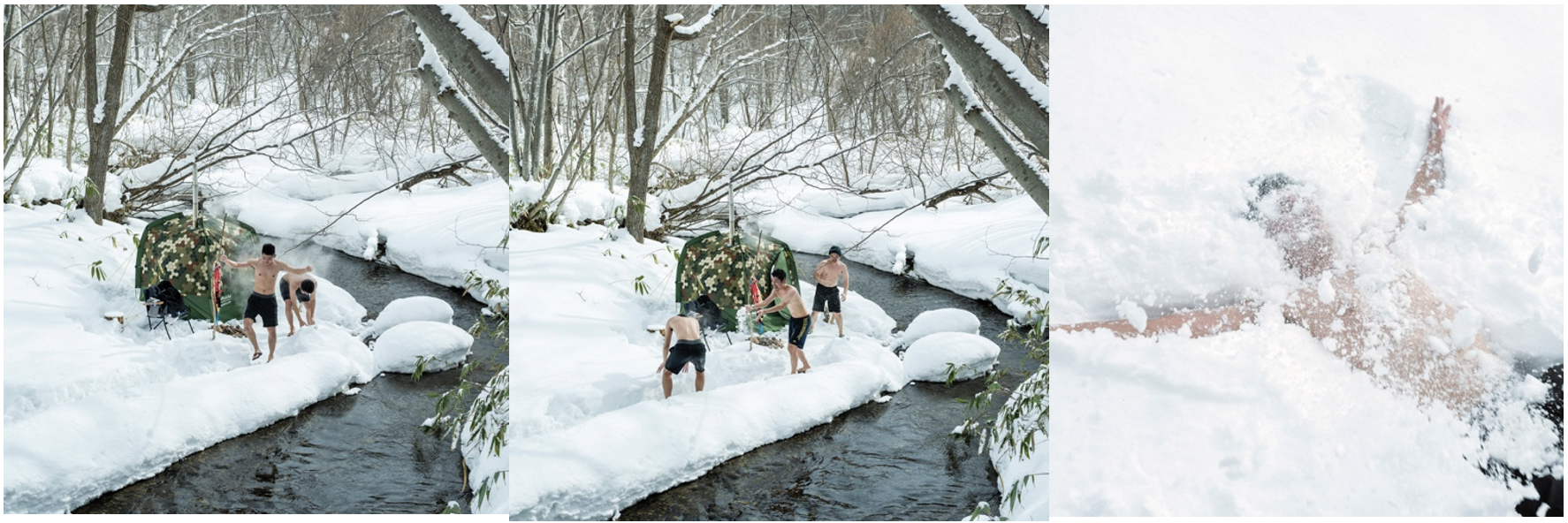 非日常の冬のテントサウナ。森の中に設置されたテントサウナを貸切で体験。温まったあとは、パウダースノーな「雪風呂」へダイブ!(お食事も別途ご利用ください。)