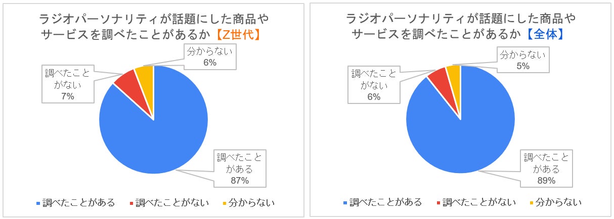 ●Z世代の約9割が、ラジオパーソナリティが話した商品やサービスを調べている。