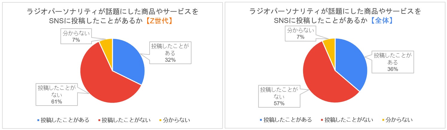 ●Z世代の3割が、ラジオパーソナリティが話した商品やサービスをSNSに投稿したことがある。