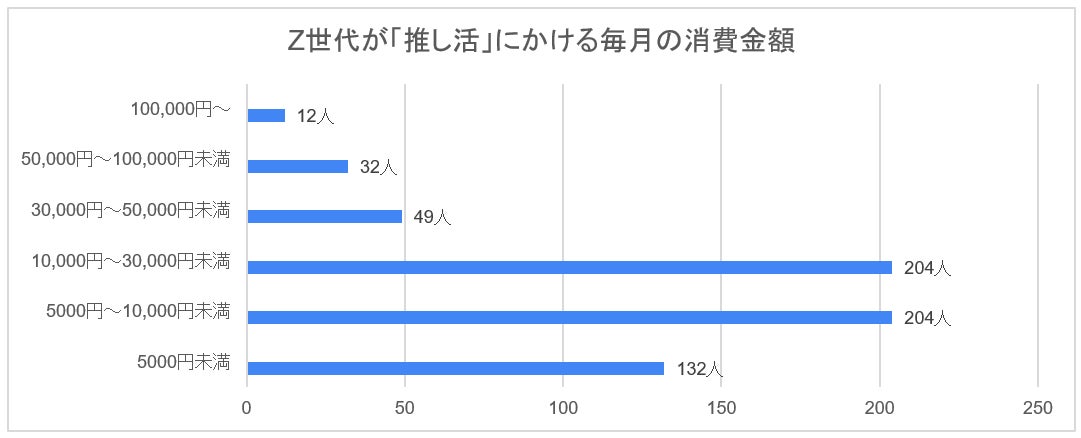 ●Z世代が「推し活」にかける毎月の金額は、5,000円~30,000円。
