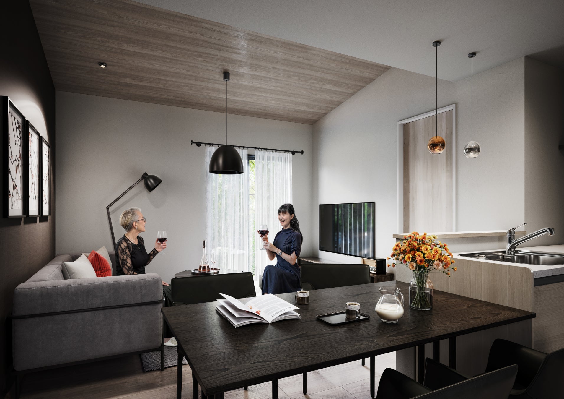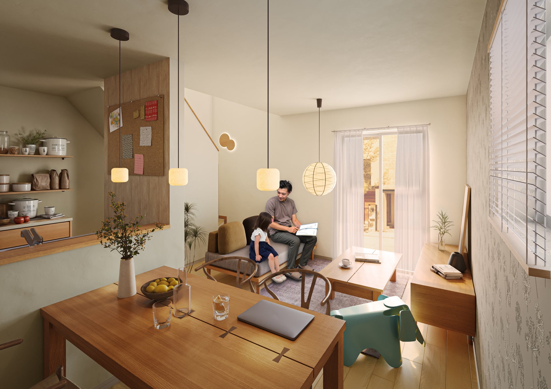 第1弾の「夫婦」をメインターゲットとした1LDK住宅に続き、第2弾では「親子」をメインターゲットとし、親子二人世帯の多様なライフスタイルに対応する2LDKの住まいを建物本体価格1,414万円~※にて提供します。