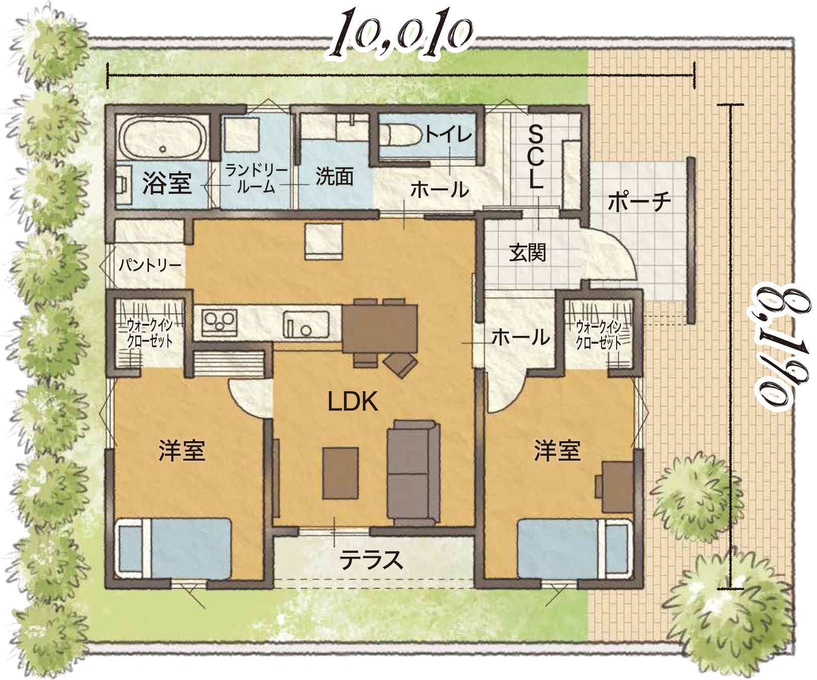 ※省エネ地域区分5地域以南の場合。建物本体価格には屋外給排水衛生工事(浄化槽、排水会所)、屋外電気引込み工事、屋内外ガス工事、外構工事、照明工事、建築確認申請料、地耐力調査、家具の価格は含まれておりません。
