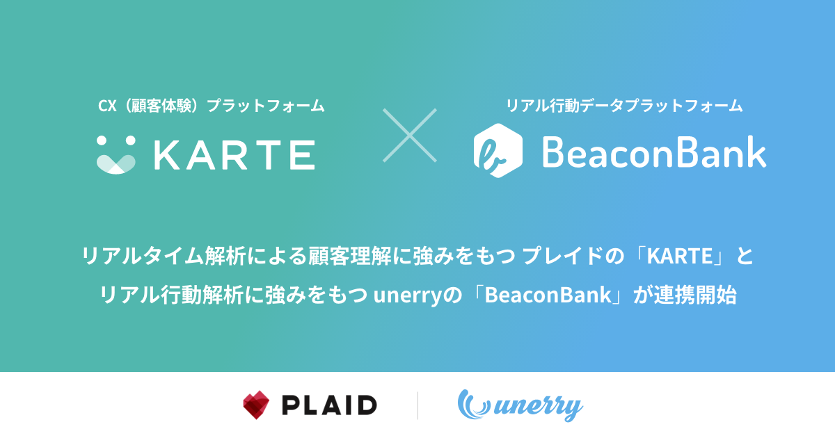 リアルタイム解析による顧客理解に強みをもつプレイドの「KARTE」とリアル行動解析に強みをもつunerryの「Beacon Bank」が連携開始