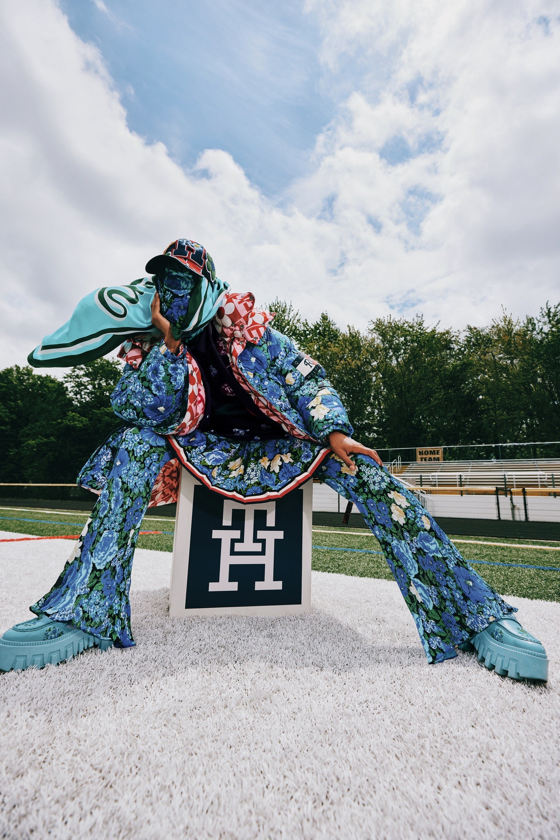 このコレクションでは、クインの特徴である大胆な柄使いと誇張されたオーバーサイズシルエットを、バーシティジャケットから5ポケットジーンズ、チノパン、レザージャケットまでヒルフィガーの象徴的なアメリカンクラシックとミックスしています。パンク、探検家、チアリーダー、スポーツ選手など様々な文化の原型の盛装にインスパイアされた40アイテムのカプセルは、性別に関係なく、オリジナルのスタイルを称えるものとなっています。