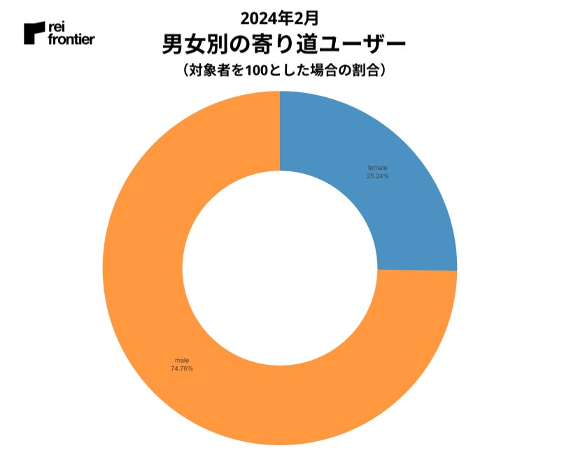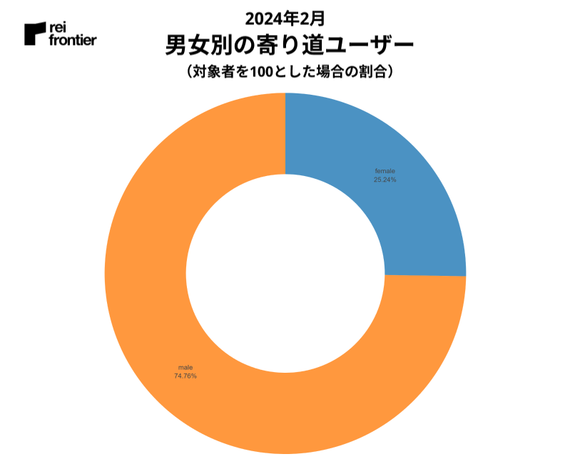 対象ユーザーは全体で男性が3/4を占めていましたが、寄り道ユーザーの結果から女性の方が寄り道率が若干高く、曜日別でも女性がほぼ全曜日で高い結果となりました。