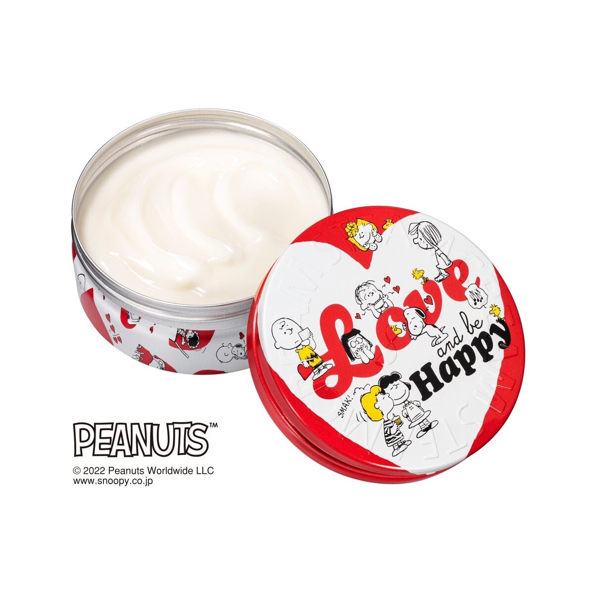 赤と白を基調としたピーナッツの仲間たちのデザインで大切な人と過ごす幸せや、大好きな仲間たちへの愛、日頃の感謝の気持ちを、スチームクリームの缶にのせて、まっすぐにお届けします。