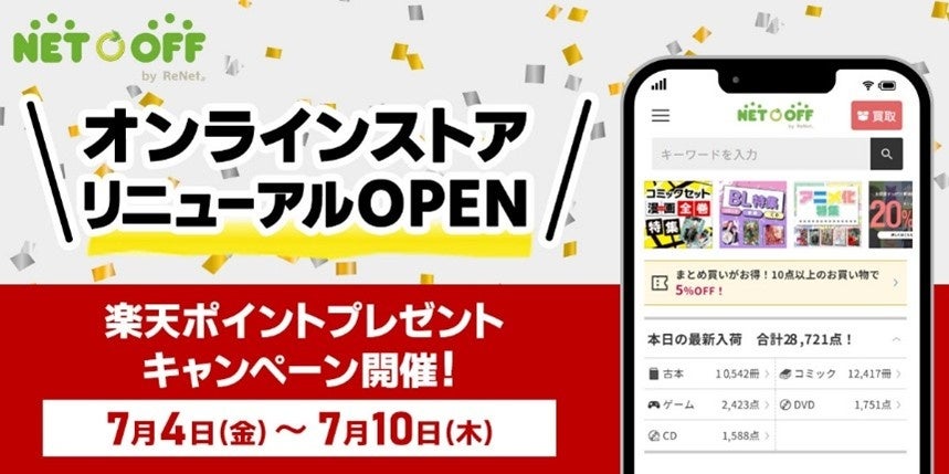 古本・ゲームのネットリユース「ネットオフ」がサイトリニューアル、記念キャンペーンを7月4日から開催!
