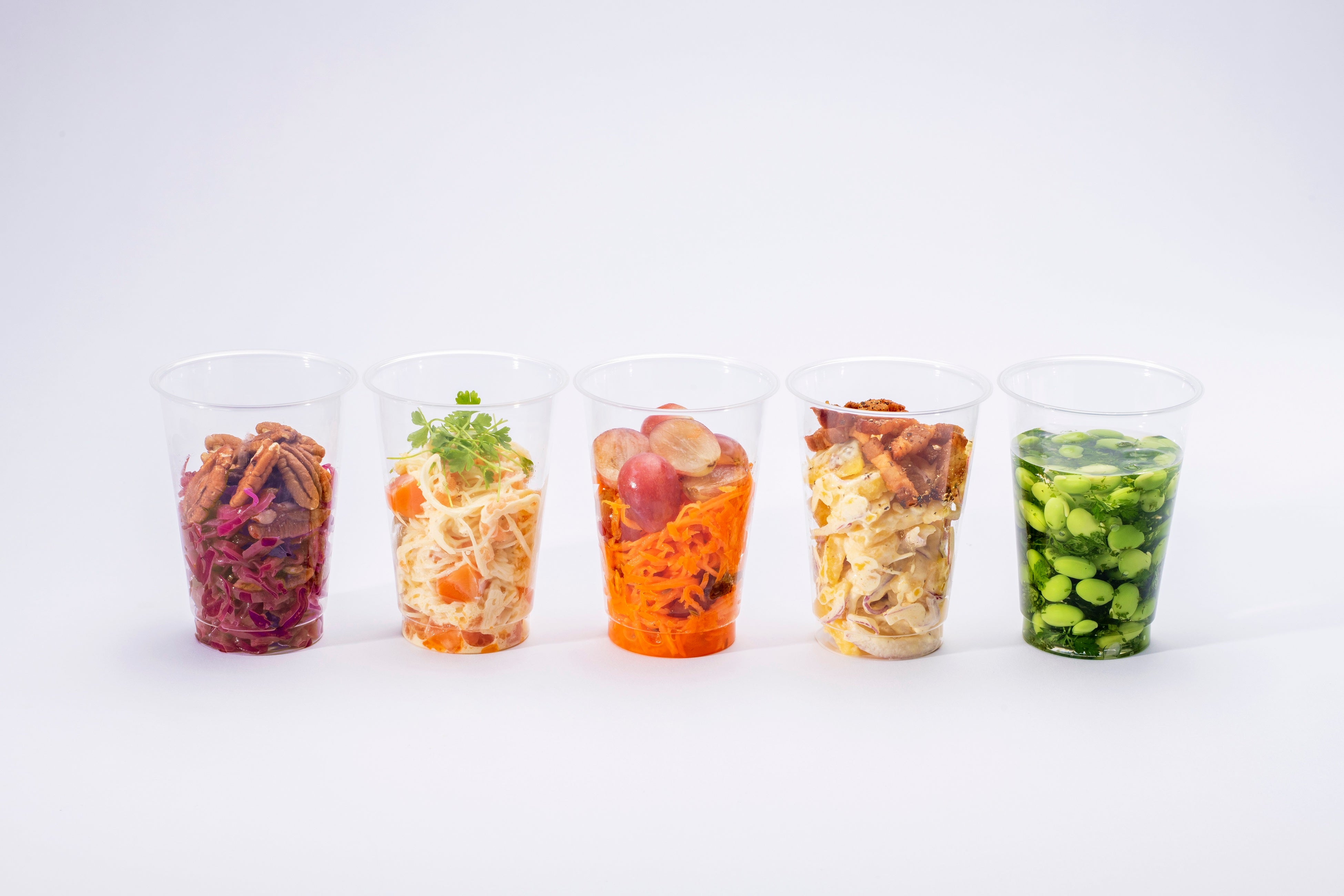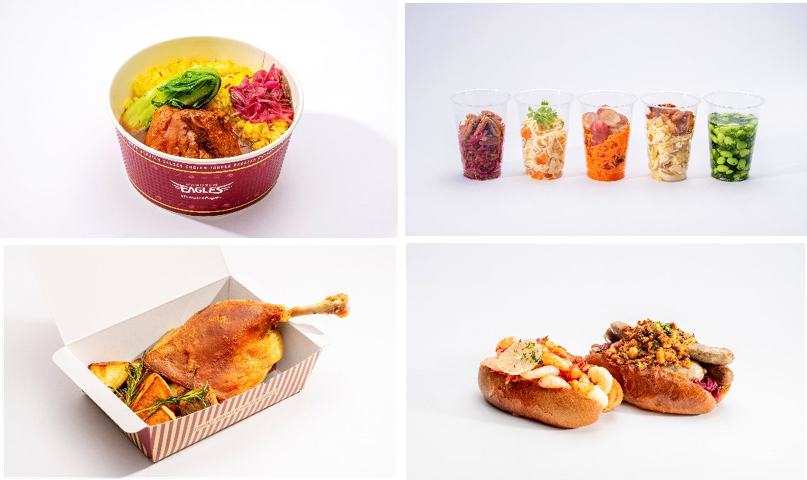 球場で提供するメニューとしては珍しいカラフルなカップサラダは、シェフ自らが地元の農園に足を運び、あえて種類や数量を指定せずに旬の野菜を仕入れて提供。農家の負担を軽減しながら、お客様には来店ごとに変わるメニューを楽しんでいただきます。