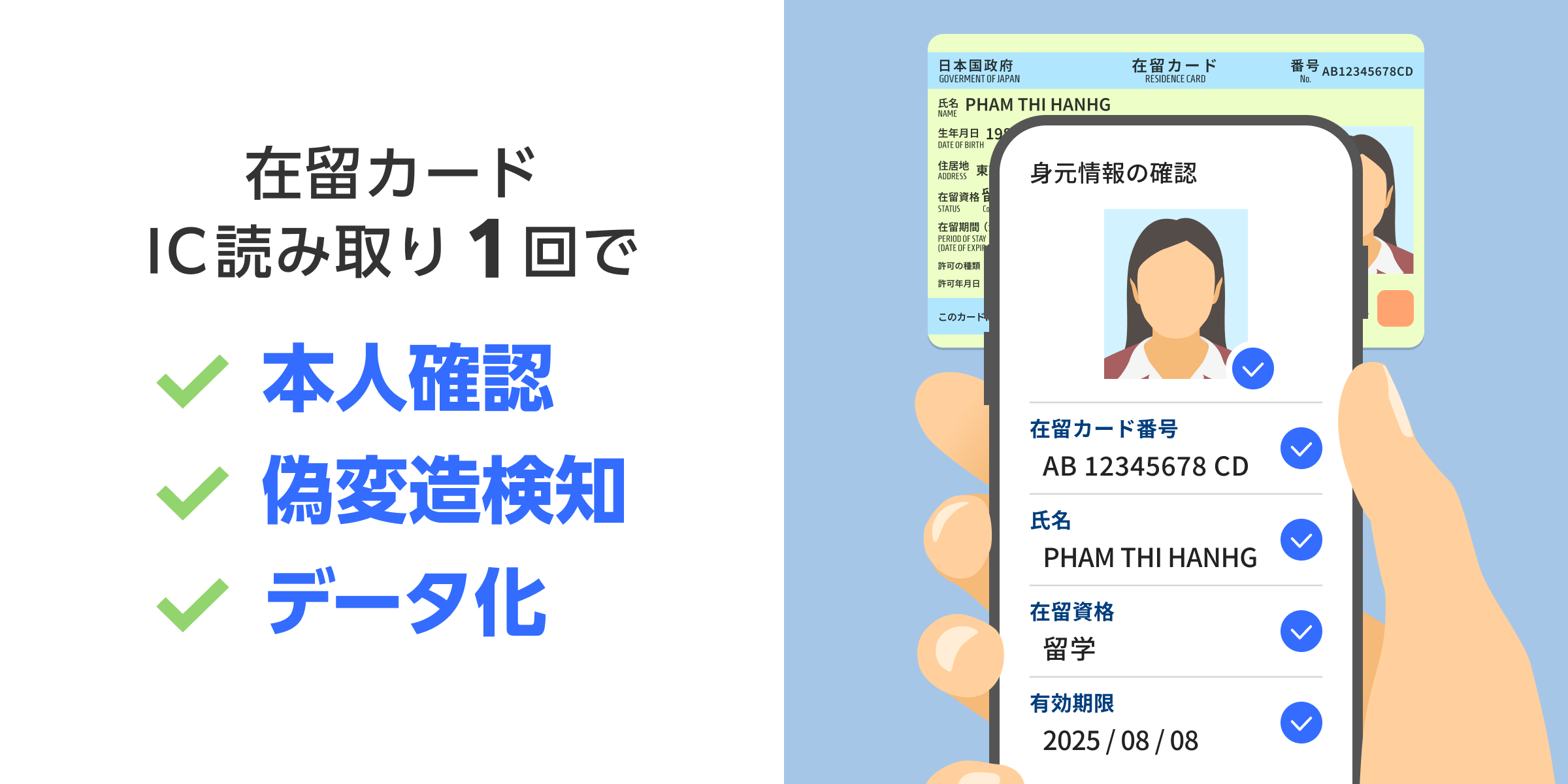 ・累計5,000万件の実績あるeKYC(オンライン本人確認)技術を使った在留カード確認