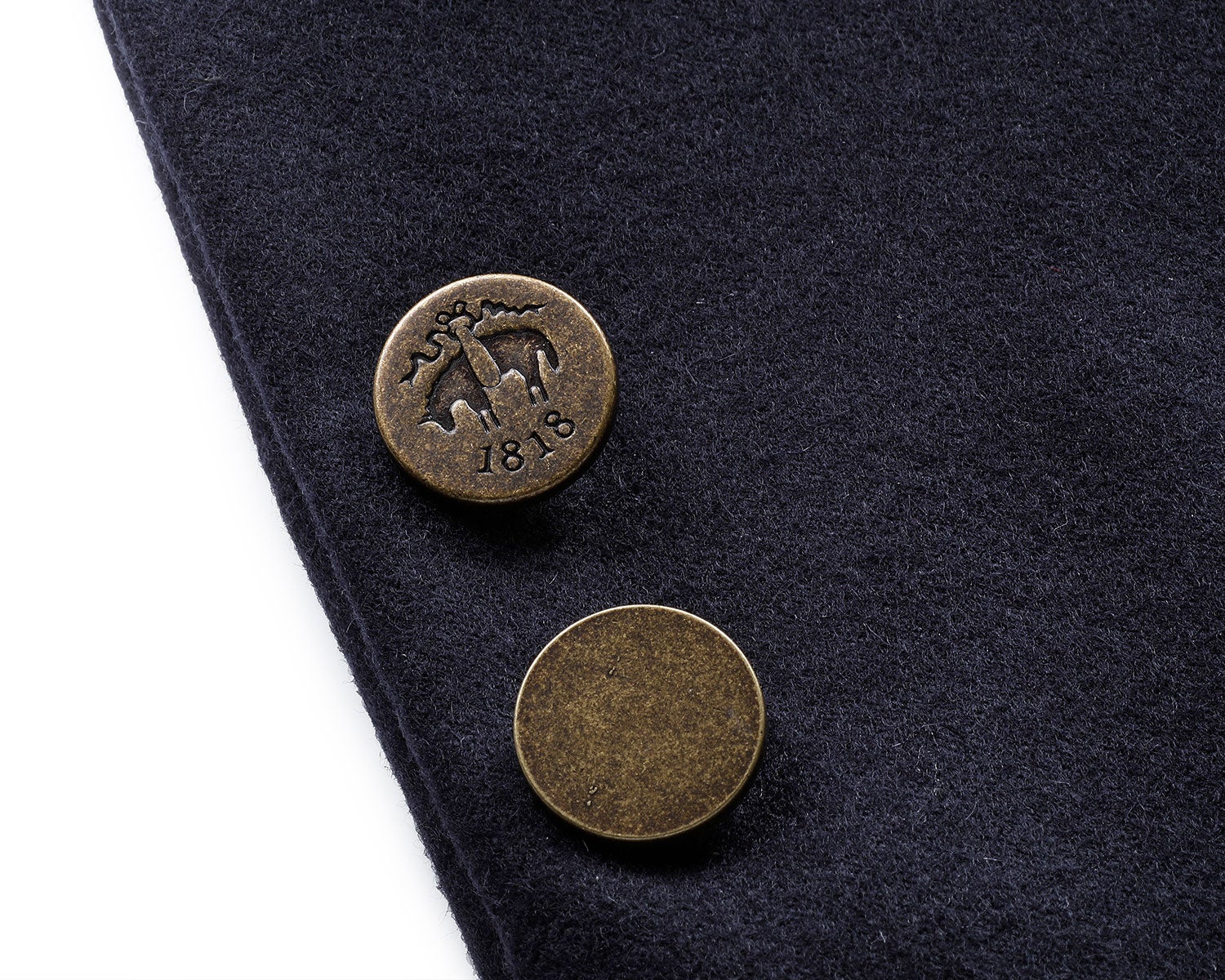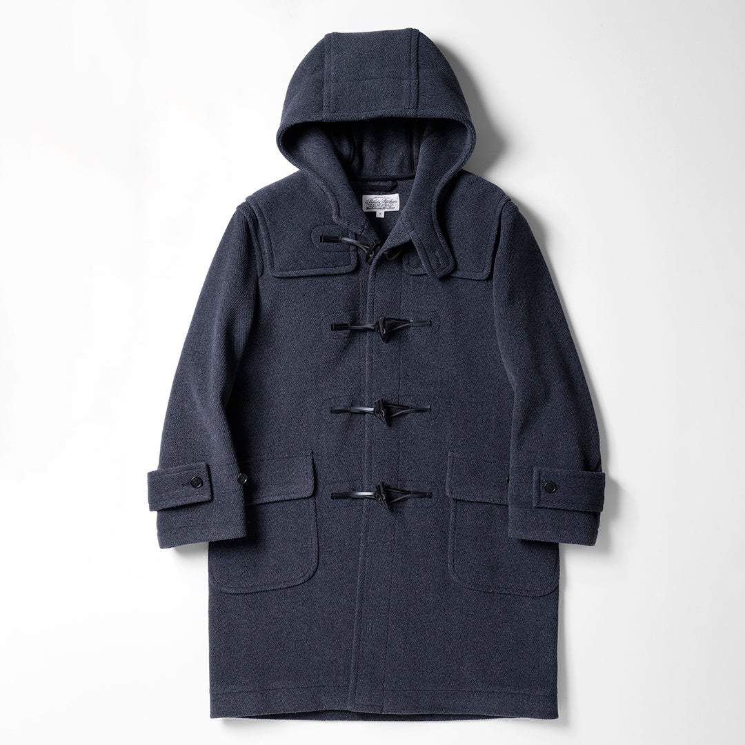 適度な厚みやふっくらとした柔かさ、深い凹凸による独自な表情など当時の特徴的な質感を再現すべく、生産工程に時間を要するイタリア製のトリプルパイルヘリンボーンウール生地を採用。また、ボディと一体型のフードやチンストラップ 、ゆったりとしたシルエットなど、細部までこだわった特別なダッフルコートです。