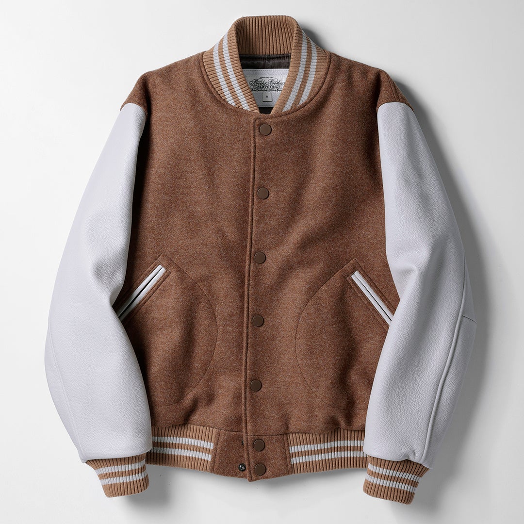 ゆとりをもたせたシルエット、リブに配されたラインなど当時の商品の雰囲気を残してアップデート。ワッペンやロゴは一切入れず、ブラウンとアイボリーの大人っぽくもヴィンテージ感のあるムードを楽しめます。素材には、尾州オリジナルのウールメルトン素材を使用しています。裏地はアイコニックなゴールデン フリースのロゴが入った中綿入りキルト仕様。
