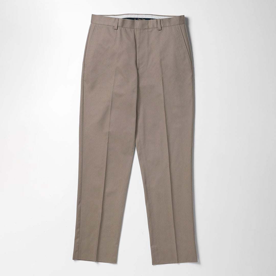 ブルックス ブラザーズの定番アイテム、チノパンツ。極細の玉縁ポケット、持ち出しのないスクエアなフロント周りやバックポケットの左側のみに付くボタンなどのクラシックなドレス仕様や、太めのシルエットなどアーカイブのディテールを再現しました。ポリエステルxコットンの混紡素材を使用し、丈夫で耐久性が高いのが特徴です。