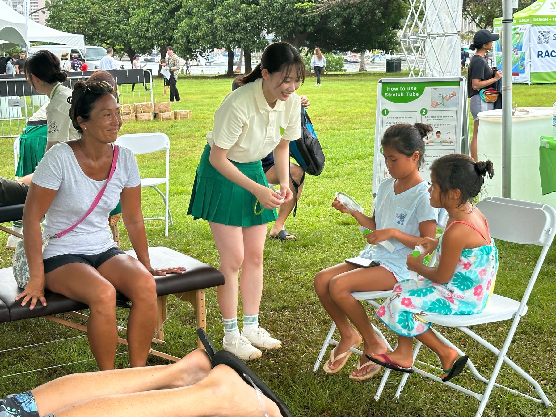 メディロムブースではリラクゼーションRe.Ra.Ku で働くセラピスト「リラクガール」がRe.Ra.Ku で提供するボディケアの無料体験を実施いたしました。大会前日は大雨にもかかわらずブースは大盛況!3日の開催で約200名の方に体験いただきました。
